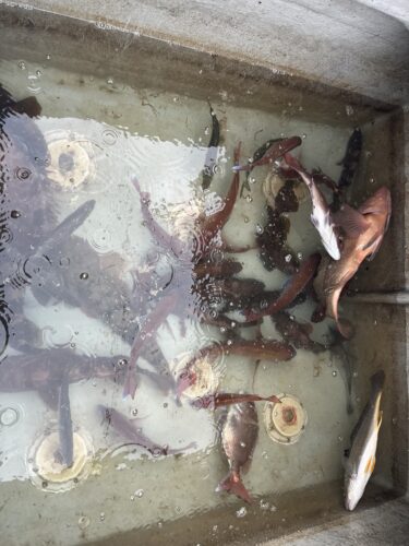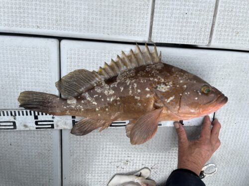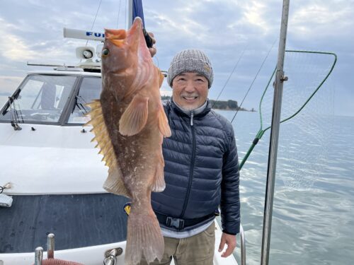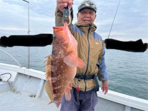 2025.12.17釣果日記 12月17日 泳がせヒラメ&テンヤ 調査 コノシロ泳がせヒラメからスタート! スタッフMにヒラメじゃなくてブリ ヒット!が、ヒラメ仕掛け切られ😭😭😭 スタッフH(ハゲちゃん) ドラグ緩め! スタッフH ヒラメ竿 PE1号 リーダー4号なのでドラグゆるゆるにしてたので良かったぁ! 当たり来たぁーヒラメと思った数秒後 ドラグ出まくりブリ??? ゆっくりやりとりと船長の操船技術でなんとかブリゲットでした! ヒラメ釣れずテンヤでアコウ狙い! 50センチオーバーアコウ3匹 帰り際コチ60センチなどなど 14時前から雨降って帰りました アコウ もうちょい釣れるかと! ご予約お待ちしてます!